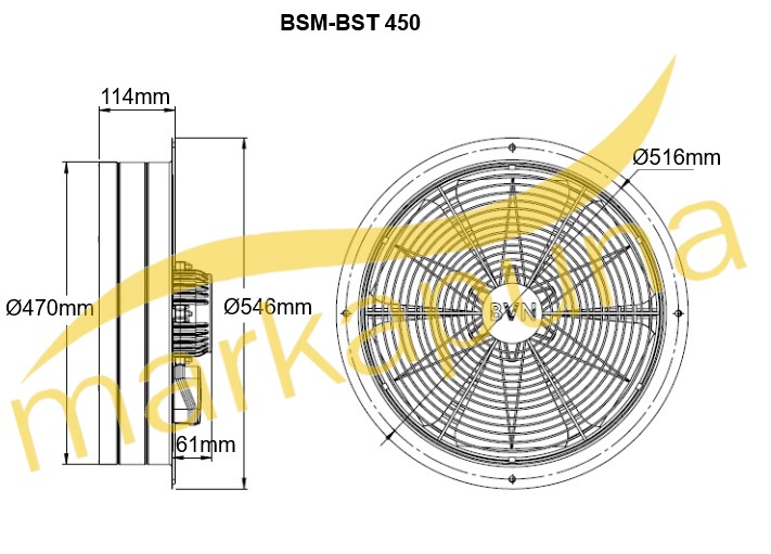 BVN Bahçıvan BST 450 Trifaze 45 cm 5000 m³/h Sanayi Tipi Aspiratör