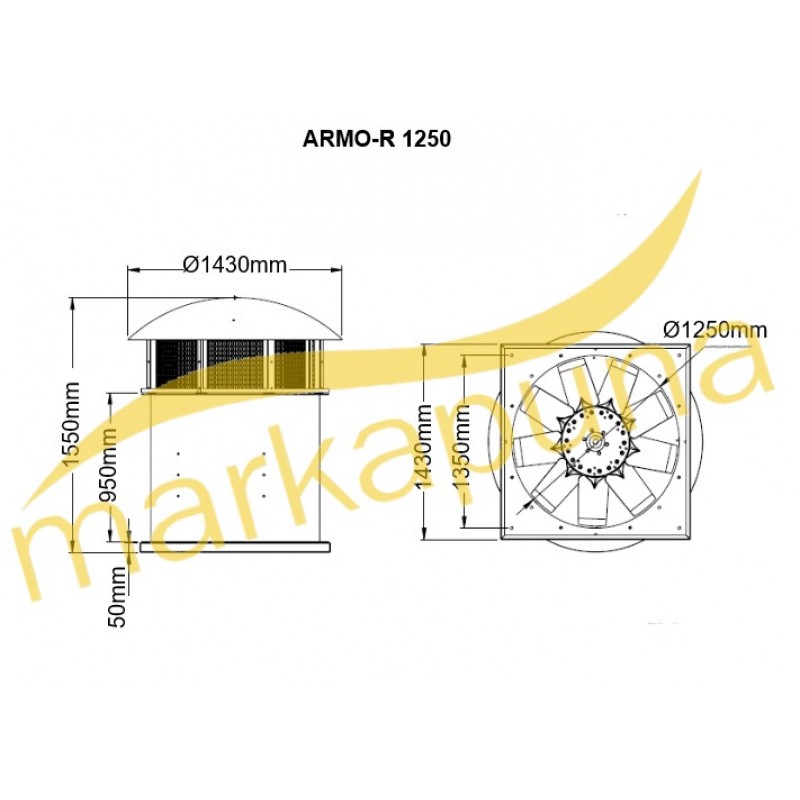BVN Bahçıvan ARMO-R 1250-6 / 30 4A Trifaze Çatı Tipi Duman Tahliye Fanı